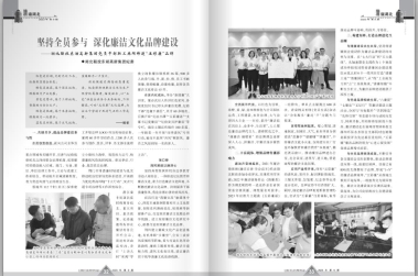 近日,湖北省紀(jì)委監(jiān)委主辦刊物《楚天風(fēng)紀(jì)》2023年第9期刊發(fā)了東湖高新集團(tuán)廉潔文化品牌建設(shè)經(jīng)驗(yàn)交流文章《堅(jiān)持全員參與 深化廉潔文化品牌建設(shè)》。